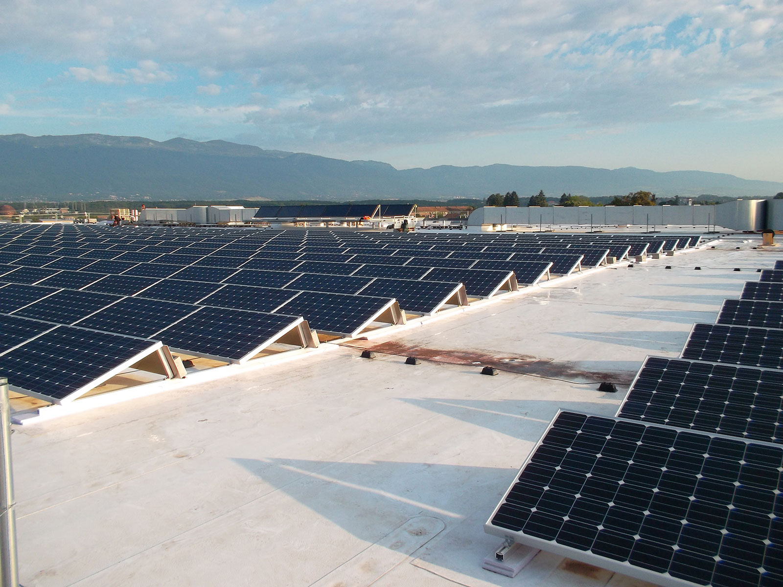 Mehrere Solarprojekte sind in Planungsphase und neue Referenzanlagen werden bald verfügbar sein auf unserer Website… Eigenheim & Gewerbe – Trimmis – GR Industrie & Transport – Savigny – VD Transport & Recycling – Latterbach – BE Industrie – Vernier – GE Industrie – Vernier – GE – 2012 Industrie – Vernier – GE – 2012 – 380 kW / 2‘500 m2 Produktion : 380’000 kWhel/Jahr = Equivalent : 38’000 l. Öl/ Einsparung : 247’000m3CO2 Produkte : 1’450 × Suntech Power STP-260-Poly + 35 × SolarMax 10MT2