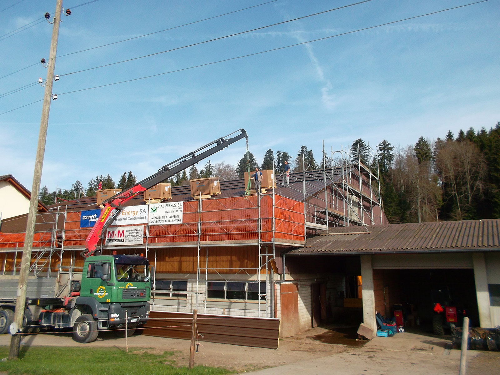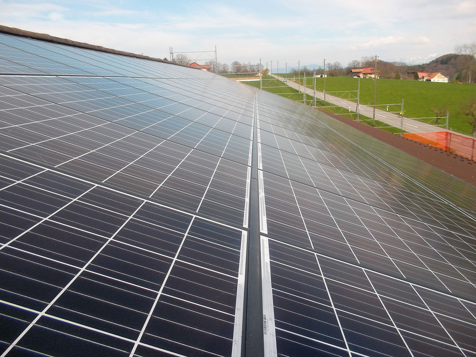 Plusieurs projets solaires en phase de planification et nouvelles installations de références disponibles bientôt aussi sur notre site web… Agriculture & Habitation – Bolligen – BE Agriculture & Habitation – Bouloz – FR Agriculture & Habitation – Le Mouret – FR Agriculture – Puidoux – VD Agriculture – Puidoux – VD Agriculture – Puidoux – VD Agriculture – Crissier – VD Agriculture – Bouloz – FR – 2015 Agriculture & Habitation – Bouloz – FR – 2015 – 30 kW / 200 m2 Production : 30’000 kWhel/année = Equivalent : 3’000 l. fioul / Economies : 19’500 m3 CO2 Produits : 110 × Q.Cells Q.Peak-G3-275-Mono + 2 × Fronius Symo 12.5-3-M